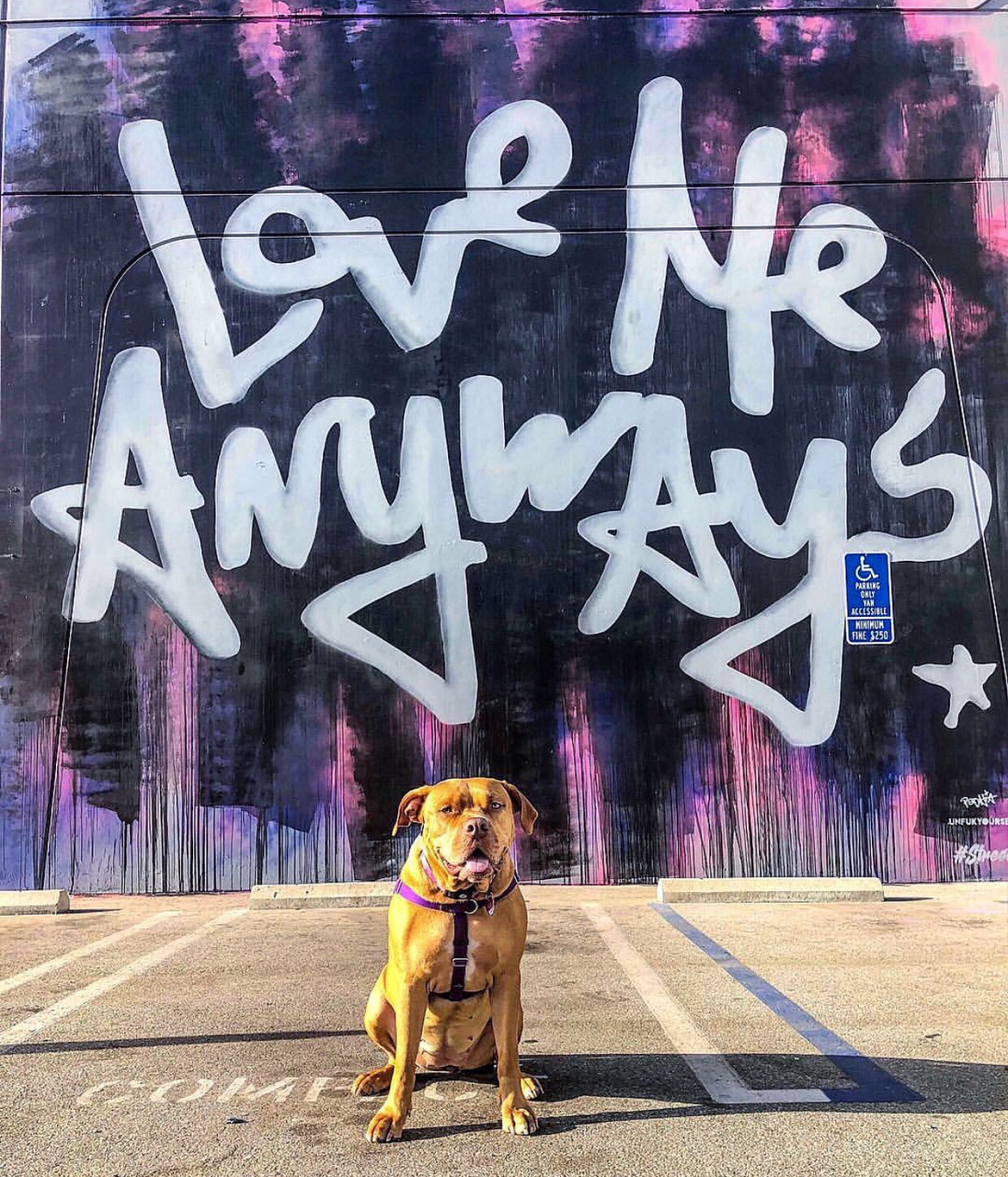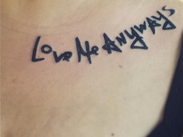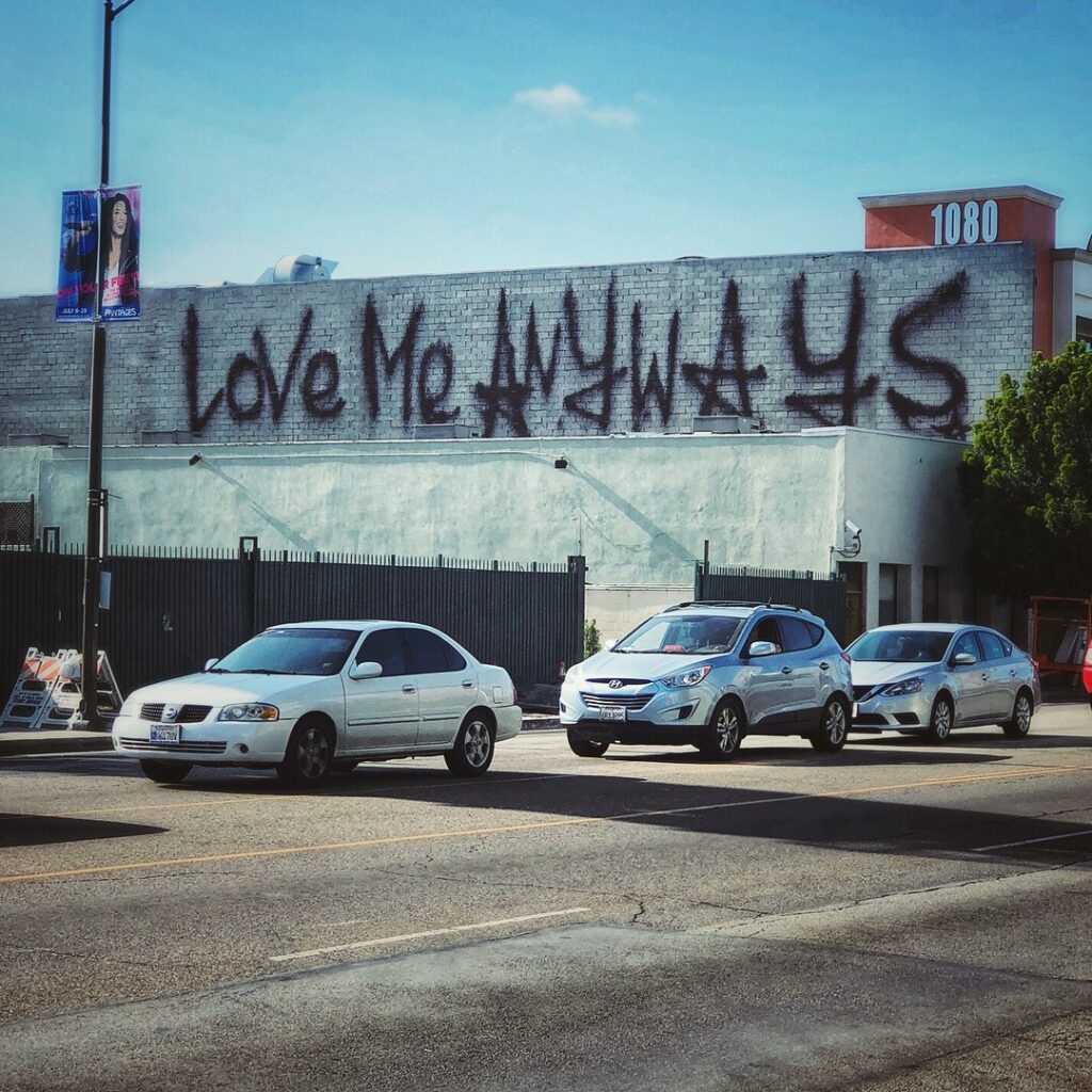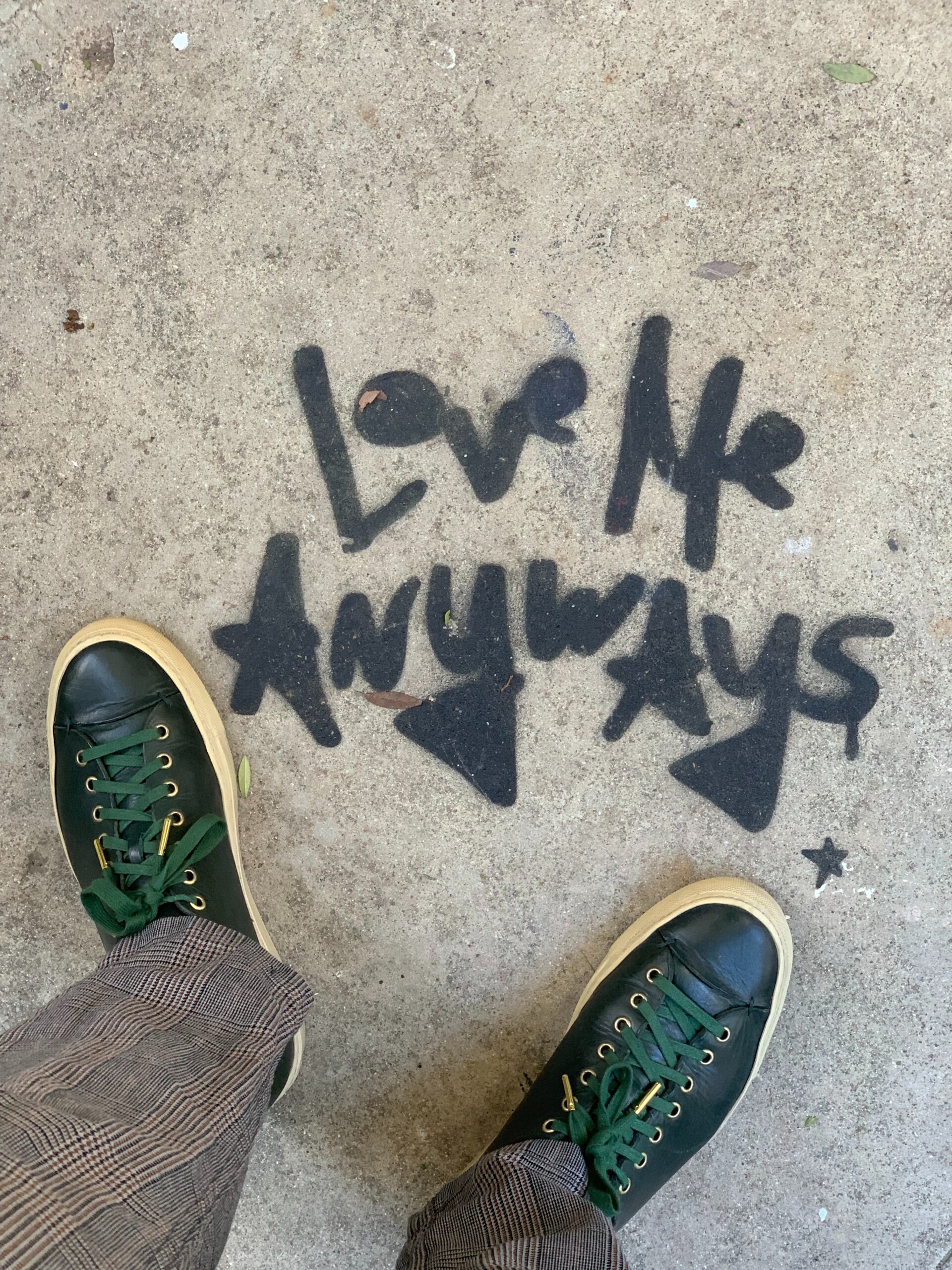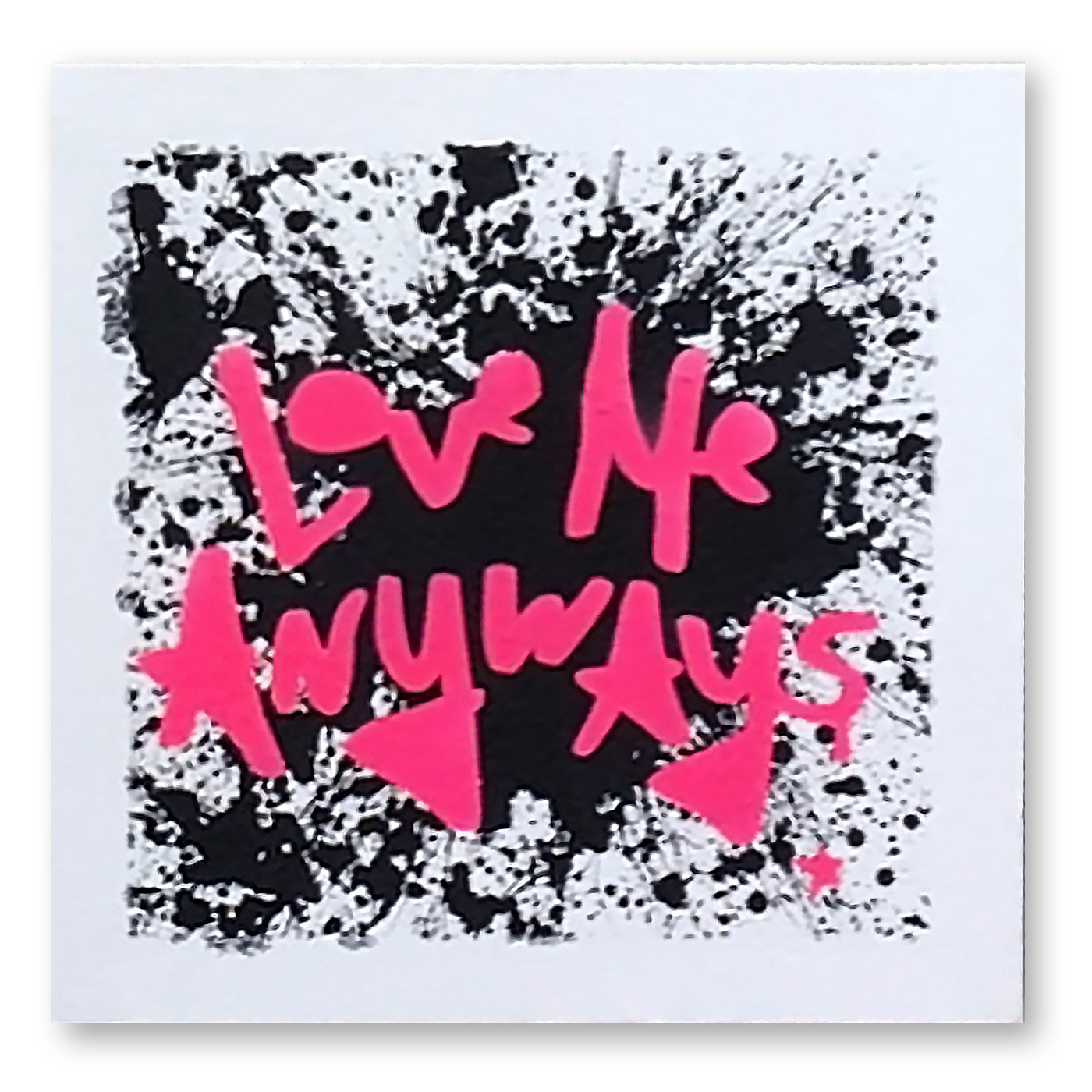 Love Me Anyways is a thought initiative created in 2015 in Los Angeles, CA, by PADHiA, intended to inspire a shift in how we feel about ourselves and one another. It is expressed through street art, murals, fine art, installations, and apparel. It is also a worldwide storybook—a living collection of stories from people across the globe, unfolding through sharing confessions, intimacies, deeper truths, proclamations, or humorous self-reflections, all ending with the words: love me anyways.