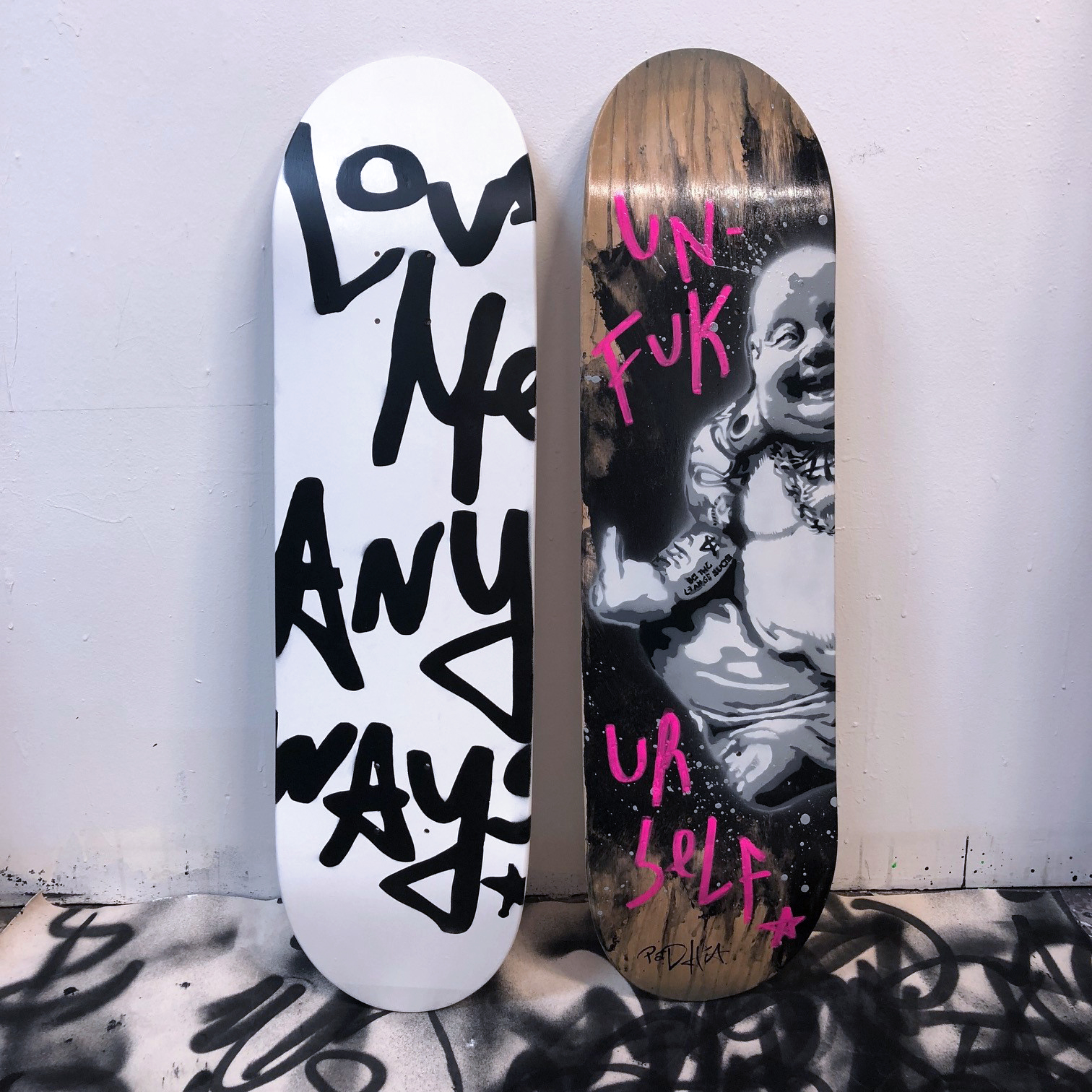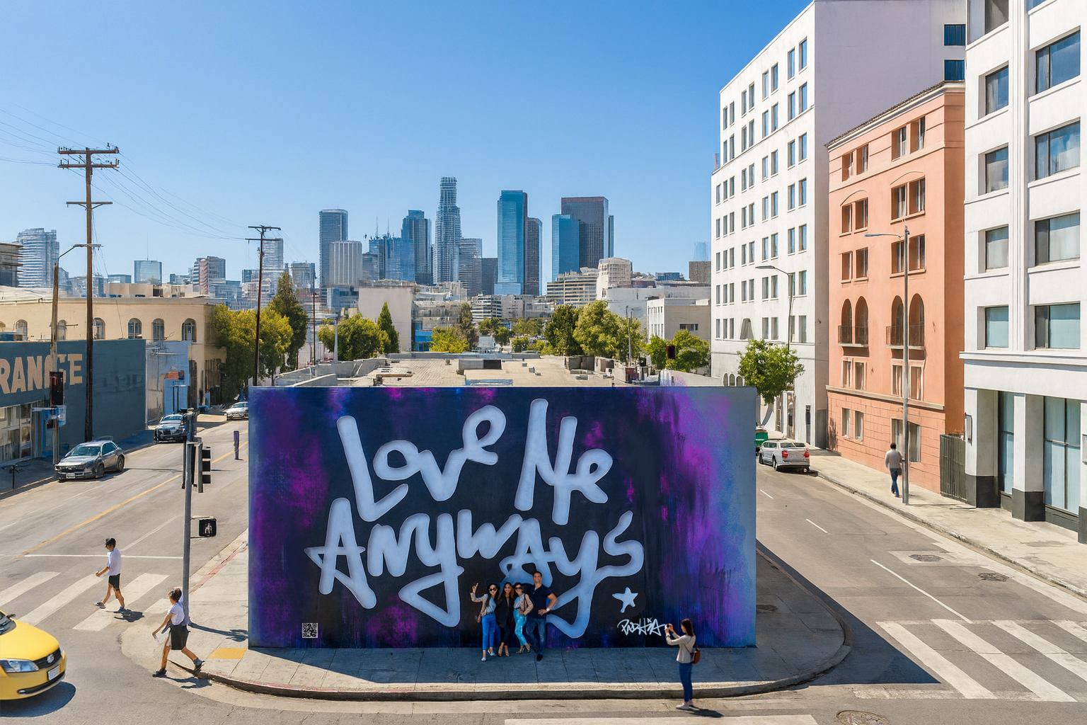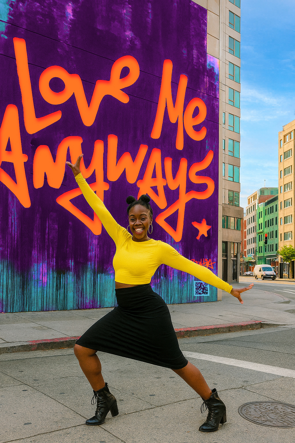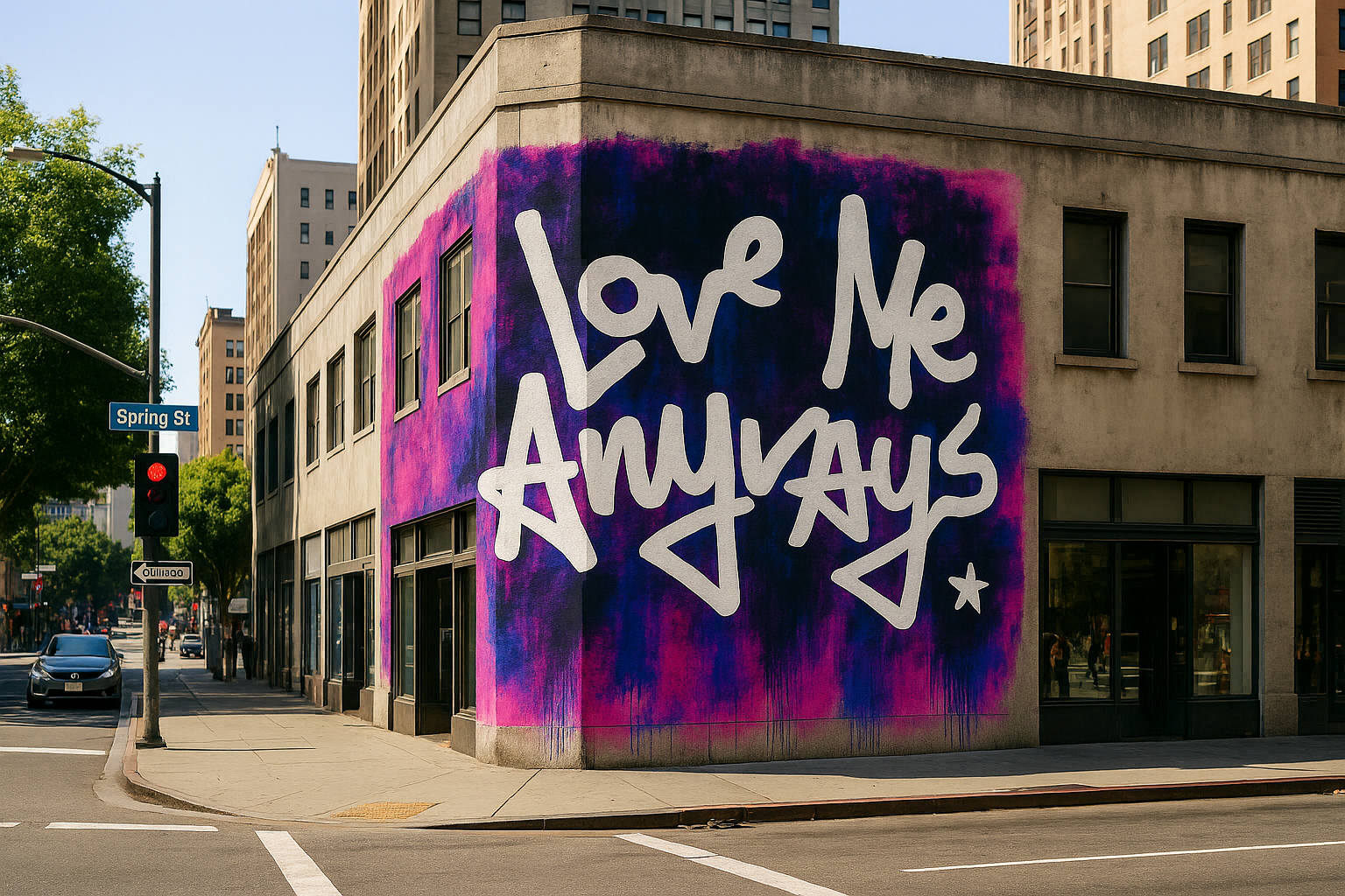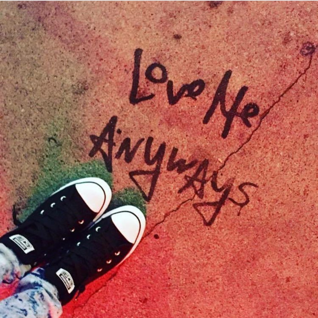 Love Me Anyways is a thought initiative created in 2015 in Los Angeles, CA, by PADHiA, intended to inspire a shift in how we feel about ourselves and one another. It is expressed through street art, murals, fine art, installations, and apparel. It is also a worldwide storybook—a living collection of stories from people across the globe, unfolding through sharing confessions, intimacies, deeper truths, proclamations, or humorous self-reflections, all ending with the words: love me anyways.
