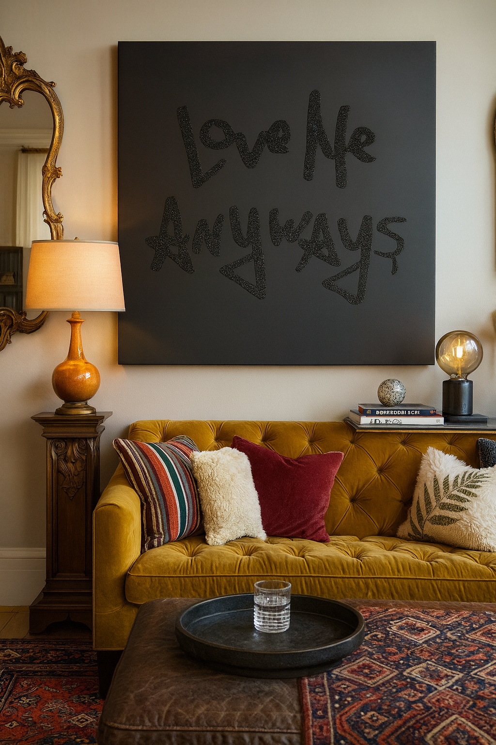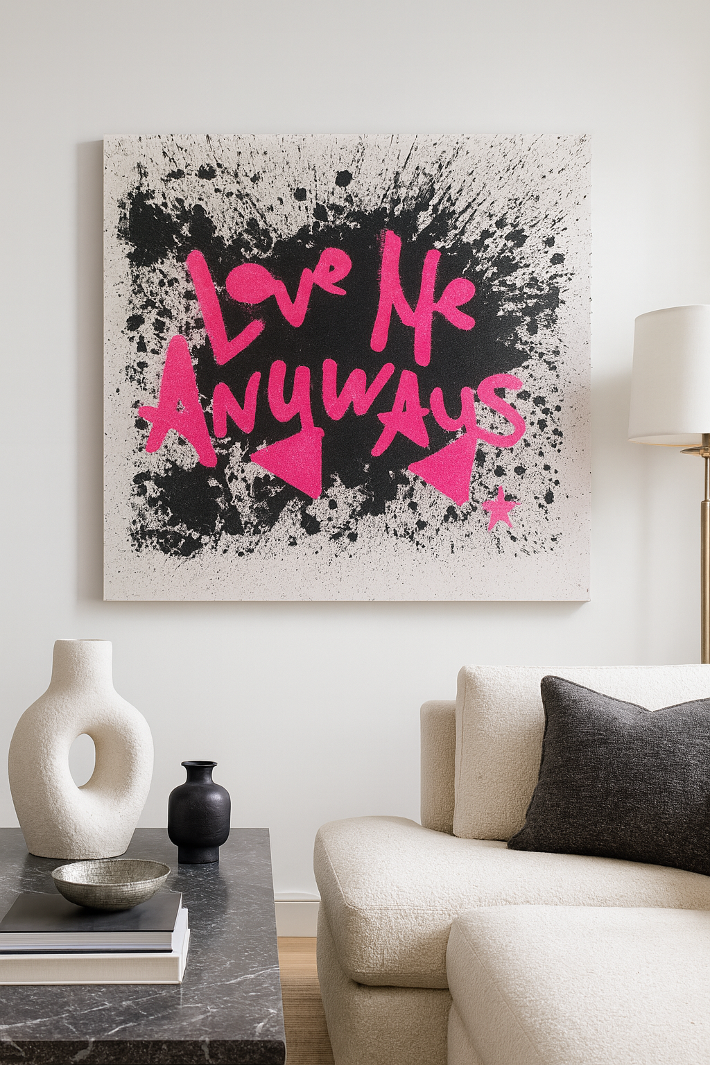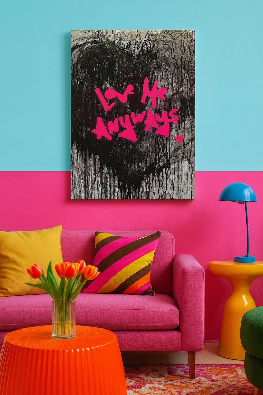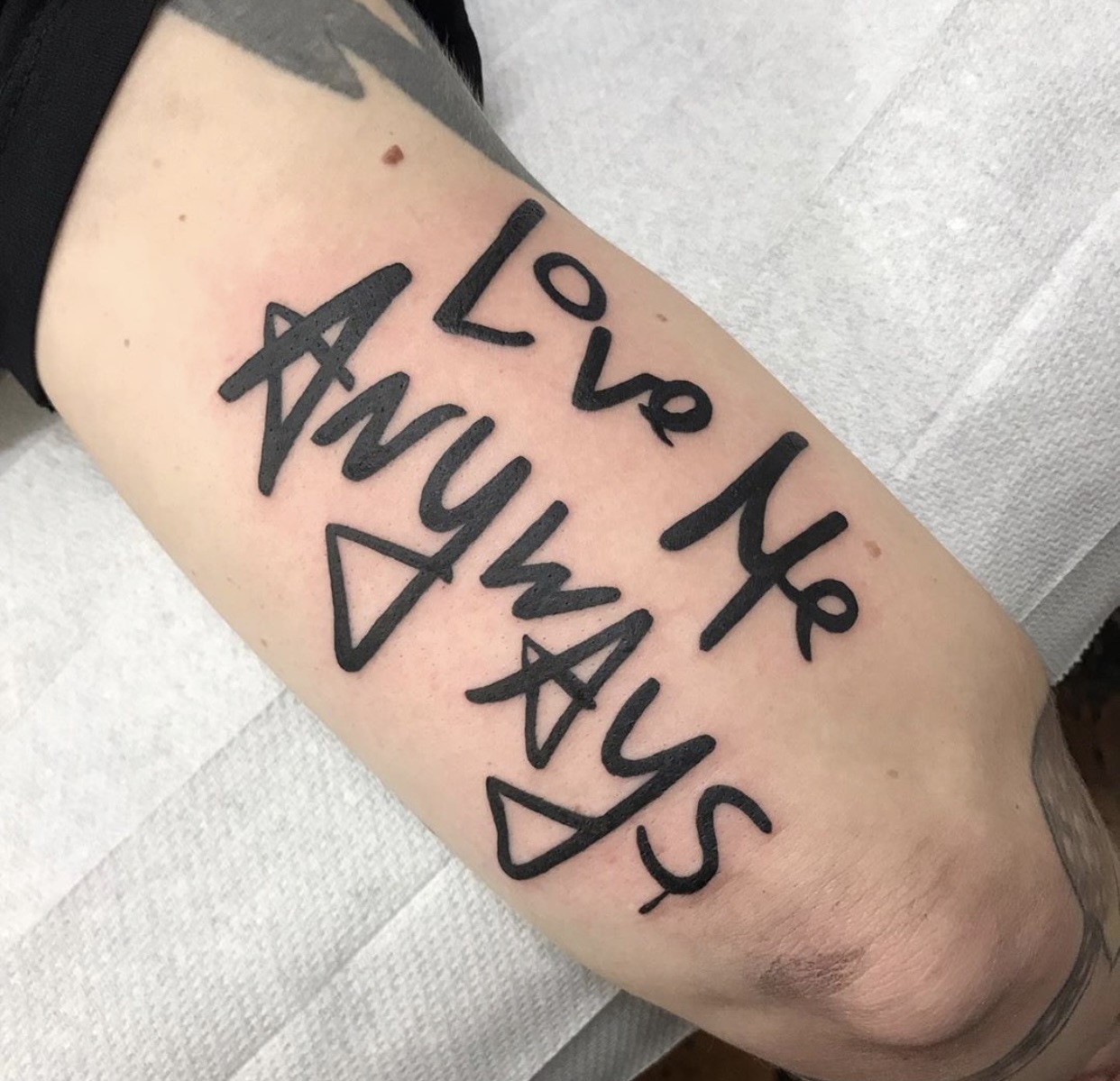 Love Me Anyways is a thought initiative created in 2015 in Los Angeles, CA, by PADHiA, intended to inspire a shift in how we feel about ourselves and one another. It is expressed through street art, murals, fine art, installations, and apparel. It is also a worldwide storybook—a living collection of stories from people across the globe, unfolding through sharing confessions, intimacies, deeper truths, proclamations, or humorous self-reflections, all ending with the words: love me anyways.